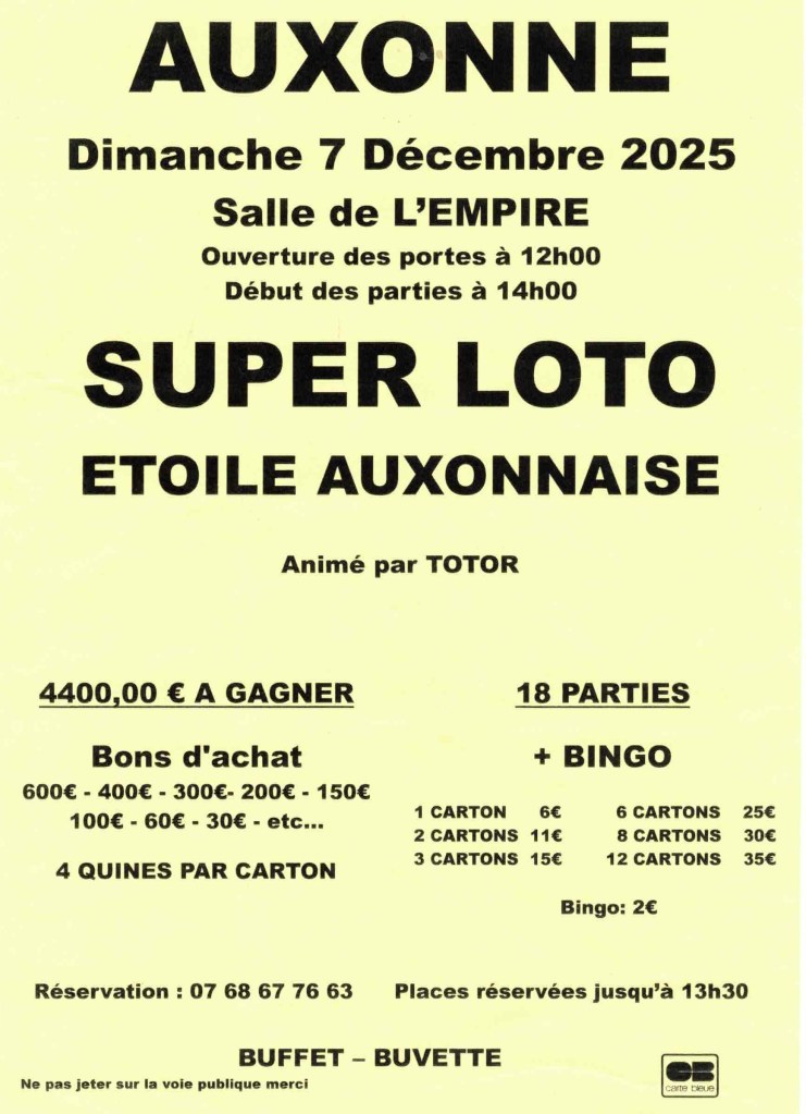 A l’approche de Noël venez tenter votre chance avec l’Etoile Auxonnaise. Nombreux bons d’achat à gagner