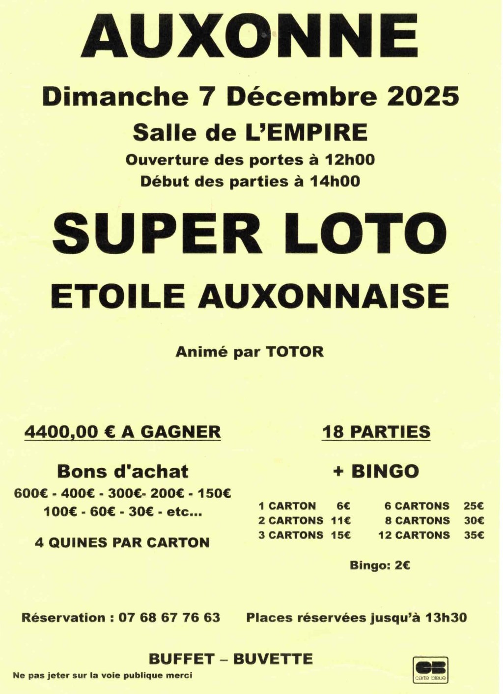 Lieu : Salle l’Empire – Auxonne (Salle des fêtes)